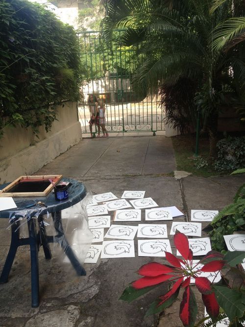 I grab my bag of paint and brushes. I stack the Hearts of the World panels that I recently silk-screened in the backyard of my Casa Particular (guest home) and Jorge picks me up in his car. We drive to a playground in Vedado, a neighborhood in Havana and sit at the edge of the […]